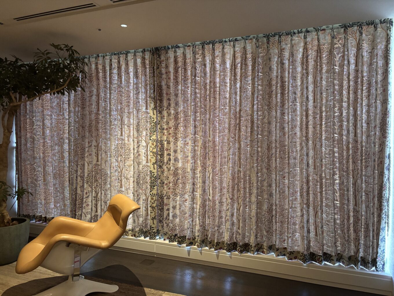 素材は『ケルムスコットツリー』というデザインのゴブラン織りカーテンをお納め致しました。